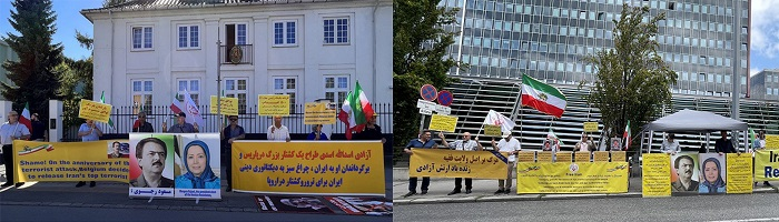 چهارشنبه۲شهریورایرانیان آزاده کپنهاگ پایتخت دانمارک ووین پایتخت اتریش علیه آخوند رئیسی،جلاد۶۷ومعامله ننگین دولت بلژیک برای فرستادن دیپلمات تروریست رژیم اسدالله اسدی به ایران ودرحمایت از تظاهرات مردم همدان علیه بیآبی اکسیون اعتراضی برگزار کردند.